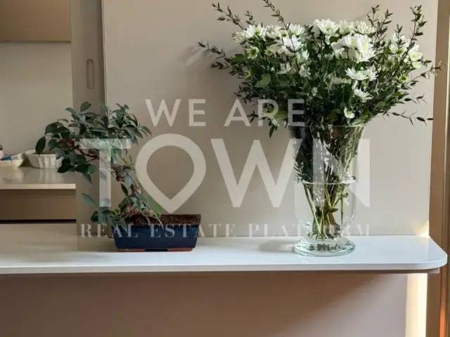 L’ingresso, curato nei dettagli, accoglie con un pratico ripostiglio dotato di scarpiera su misura e cappottiera a specchio. La zona living, caratterizzata da affacci aperti e grande luminosità, rappresenta il cuore della casa: un ambiente accogliente e raffinato, impreziosito da un importante tavolo di rappresentanza, un ampio divano angolare e una scenografica cucina Veneta Cucine a tutta altezza. La parete “vedo/non vedo” aggiunge un tocco di design e crea un ulteriore piano di lavoro. A servizio della zona giorno si trovano un bagno finestrato, articolato in due vani, e un ampio locale lavanderia.